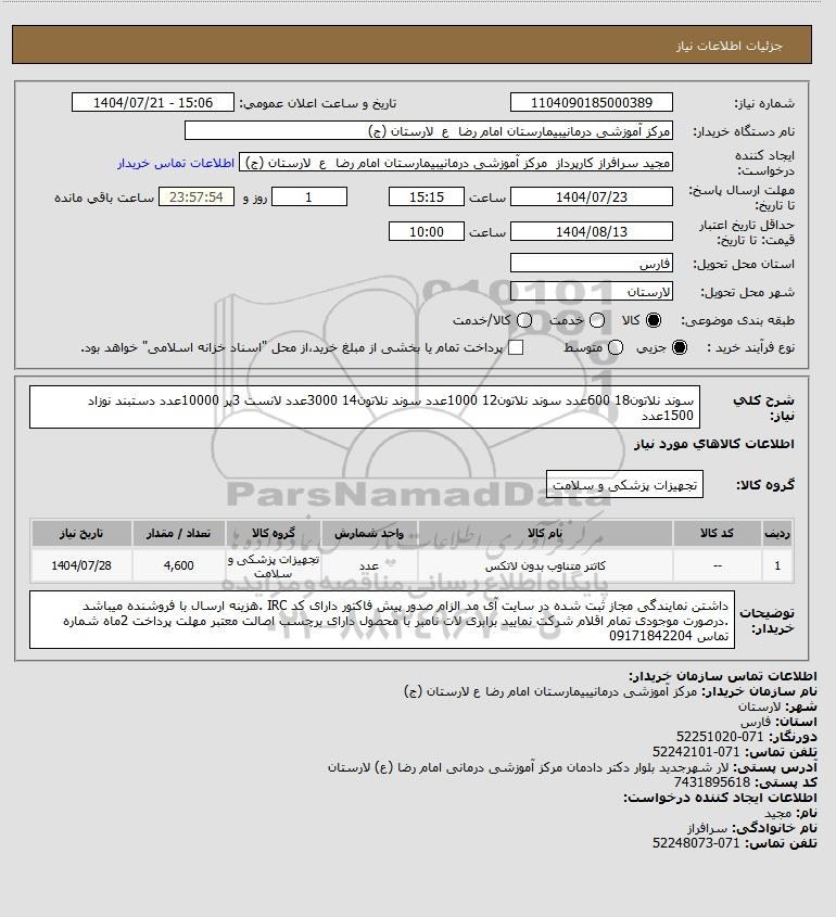 شرح کلی نیاز: سوند نلاتون18 600عدد