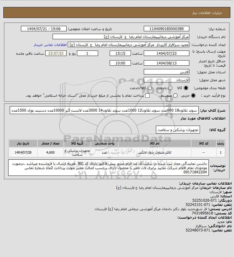 نام دستگاه خریدار:مرکز آموزشی درمانیبیمارستان امام رضا ع لارستان (ج)