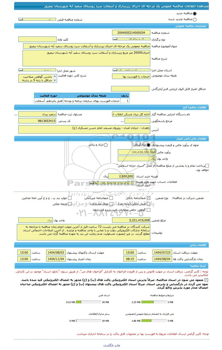 | شماره مناقصه | 2004005214000034 | ||||||||
