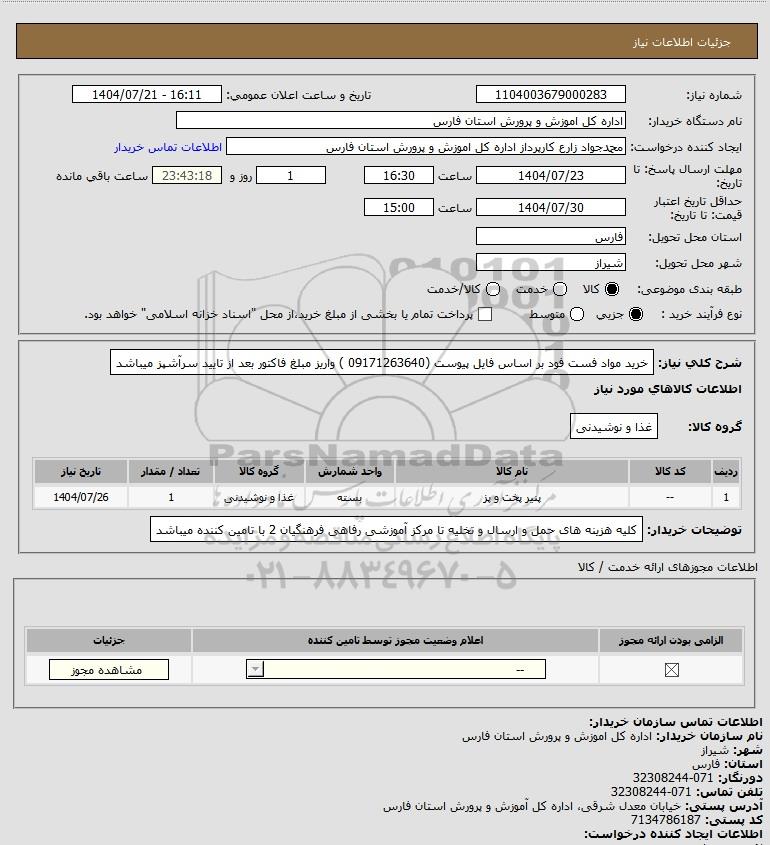 نام دستگاه خریدار:اداره کل اموزش و پرورش استان فارس
