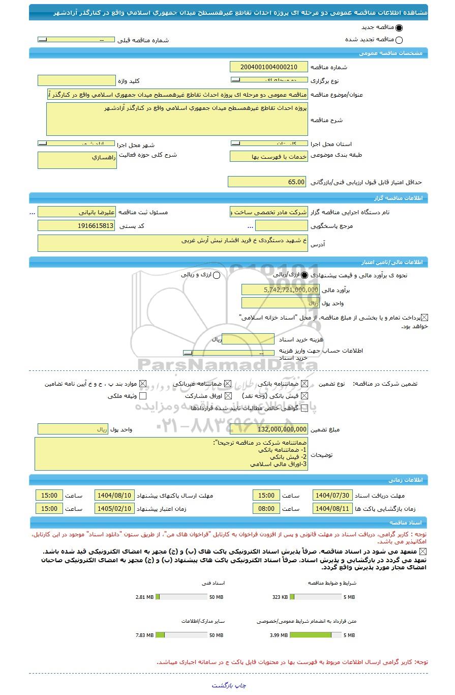 | مبلغ تضمین | 132,000,000,000 | واحد پول | ریال |