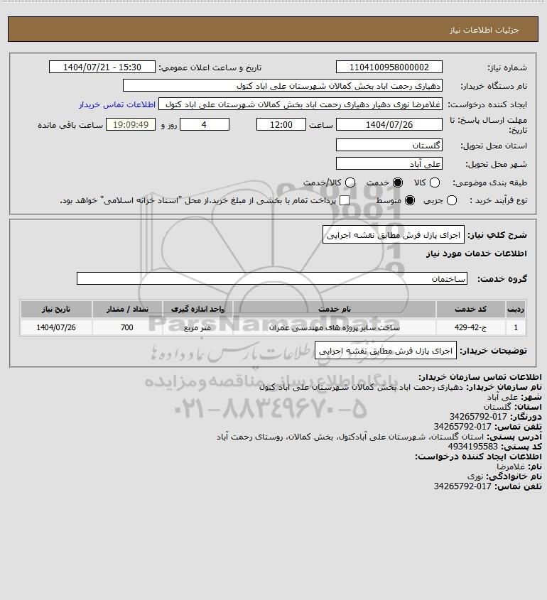 توضیحات خریدار:اجرای پازل فرش مطابق نقشه اجرایی