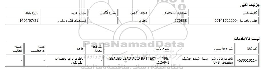 علی ناصرنیا - 05141522299170838باطریاستعلام الکترونیکی1404/07/21