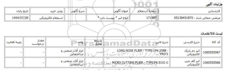 مرتضی جمالی شاد - 05138451875171987انواع انبر * پیوست دارد *استعلام الکترونیکی1404/07/28