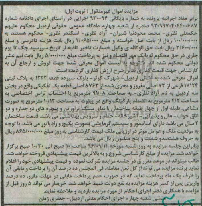مزایده,مزایده قطعه 1222 به پلاک ثبتی 17124 فرعی