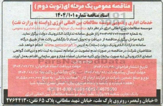 خدمات اداری و عمومی موسسه مطالعات بین المللی انرژی (وابسته به وزارت نفت)