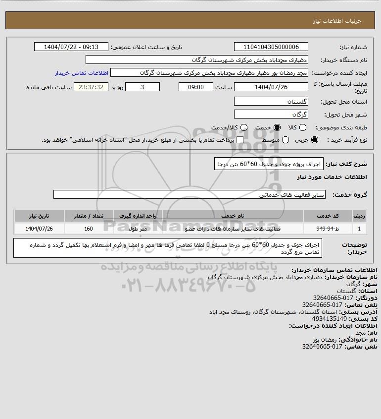 شرح کلی نیاز: اجرای پروژه جوی و جدول 60*60 بتن درجا