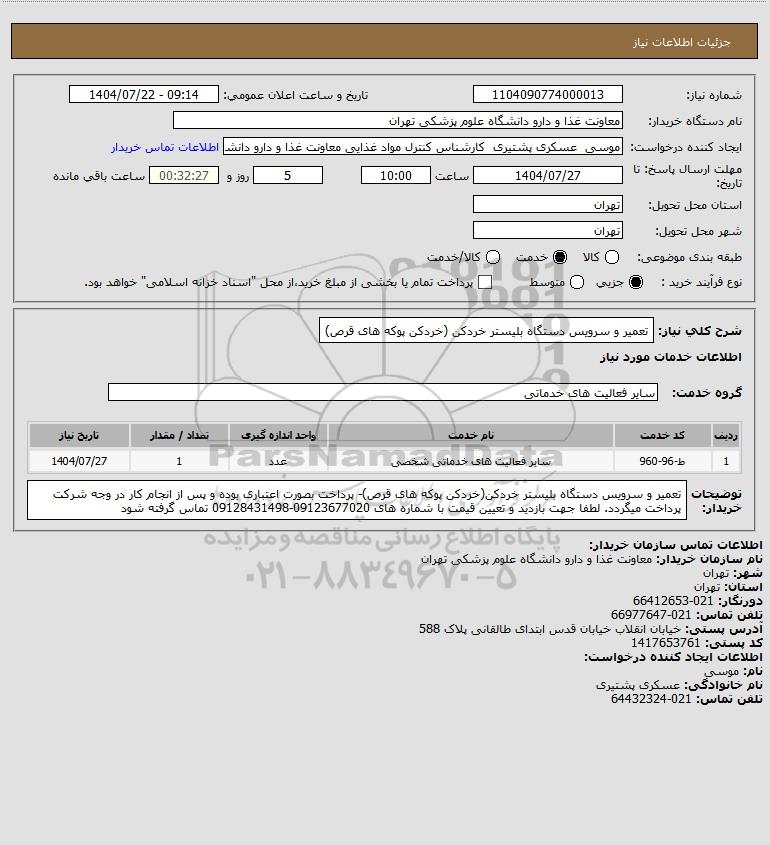 استعلام تعمیر و سرویس دستگاه بلیستر خردکن (خردکن پوکه های قرص), استعلام تعمیر و سرویس دستگاه بلیستر خردکن (خردکن پوکه های قرص)
