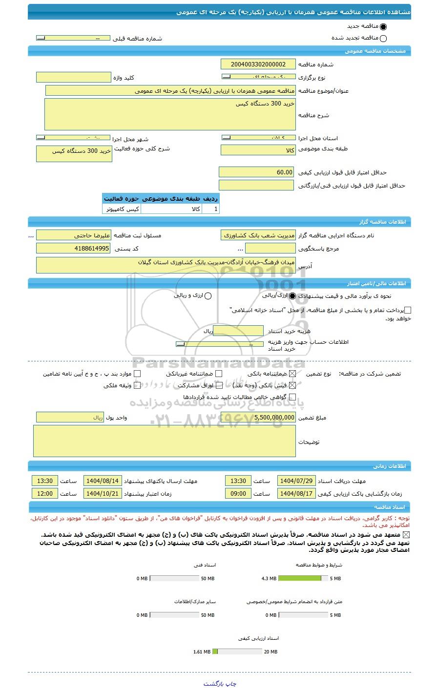 | شرح مناقصه | خرید 300 دستگاه کیس | ||||||||