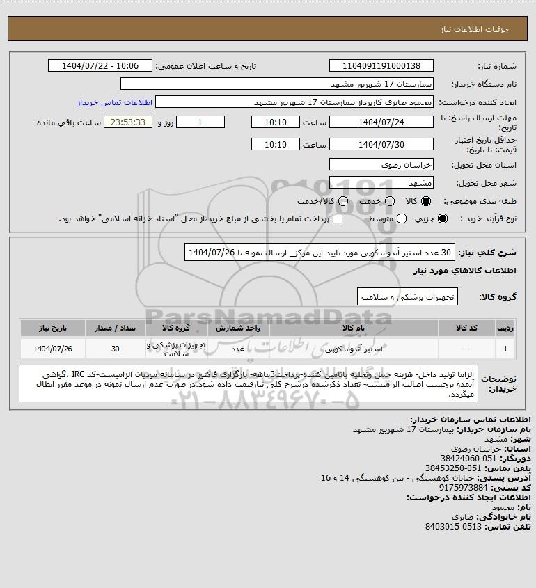 نام دستگاه خریدار:بیمارستان 17 شهریور مشهد