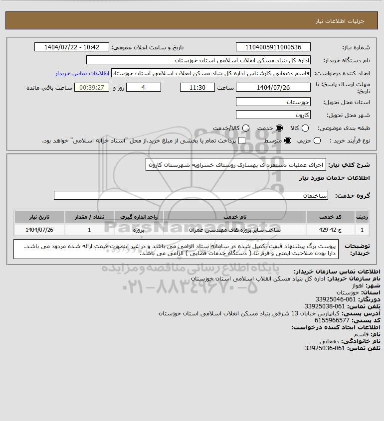 نام دستگاه خریدار:اداره کل بنیاد مسکن انقلاب اسلامی استان خوزستان
