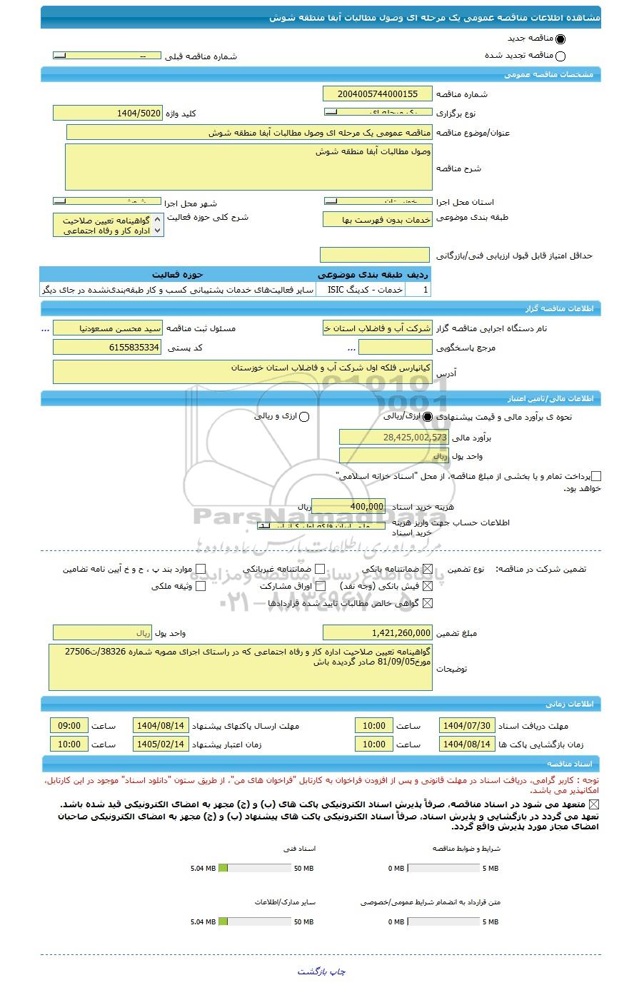 | شماره مناقصه | 2004005744000155 | ||||||||
