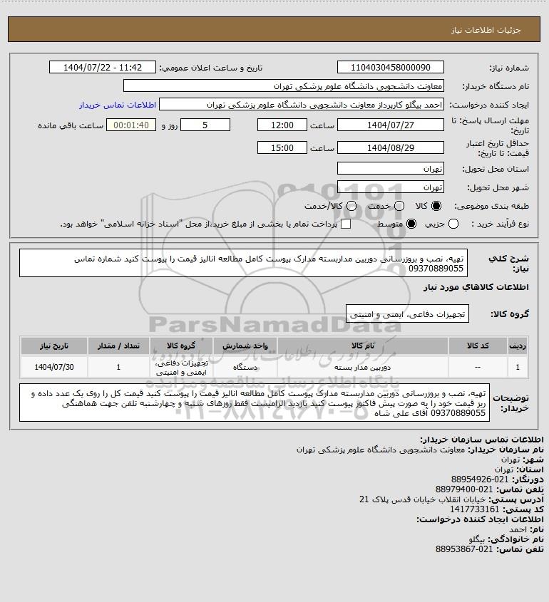 نام دستگاه خریدار:معاونت دانشجویی دانشگاه علوم پزشکی تهران