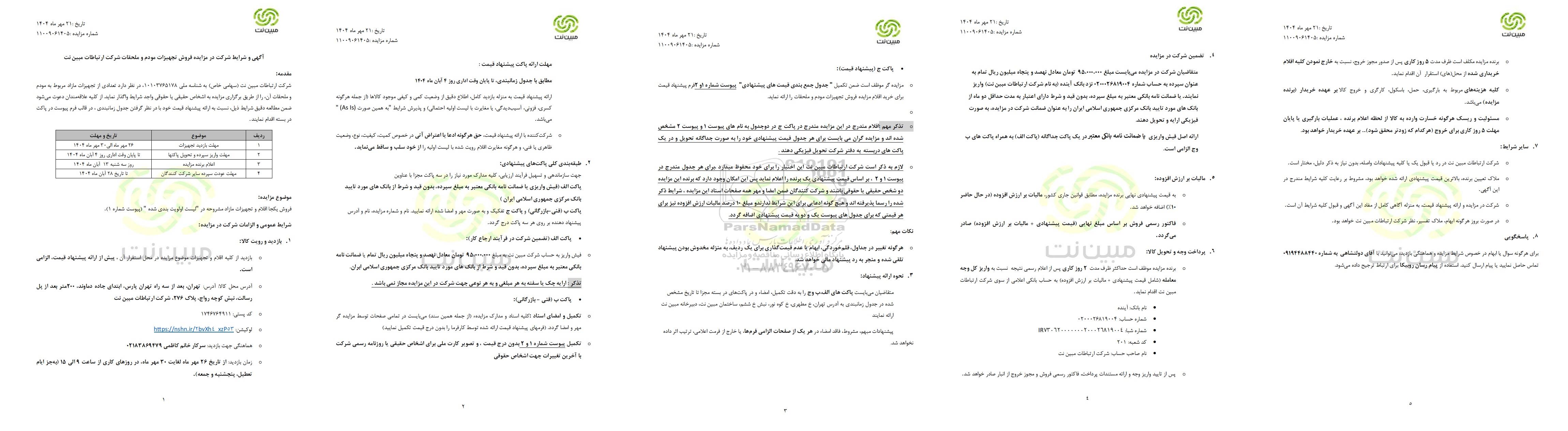 آگهی و شرایط شرکت در مزایده فروش تجهیزات مودم و ملحقات شرکت ارتباطات مبین نت