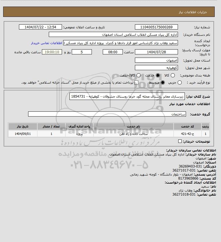 نام دستگاه خریدار:اداره کل بنیاد مسکن انقلاب اسلامی استان اصفهان