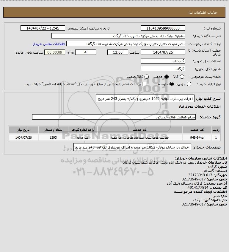 نام دستگاه خریدار:دهیاری ولیک اباد بخش مرکزی شهرستان گرگان