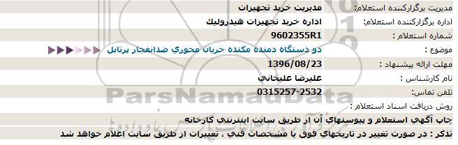 اداره برگزارکننده استعلام: اداره خرید تجهیزات هیدرولیک