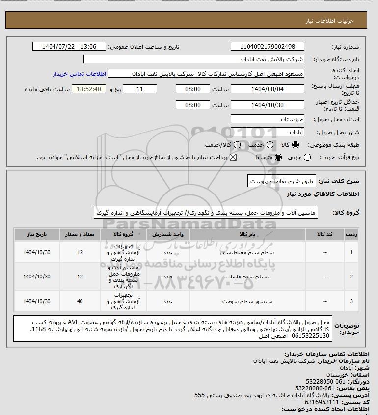 نام دستگاه خریدار:شرکت پالایش نفت ابادان