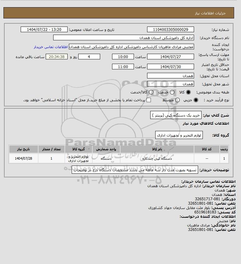 نام دستگاه خریدار:اداره کل دامپزشکی استان همدان