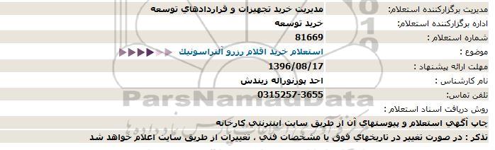 موضوع : استعلام خرید اقلام رزرو آلتراسونیک