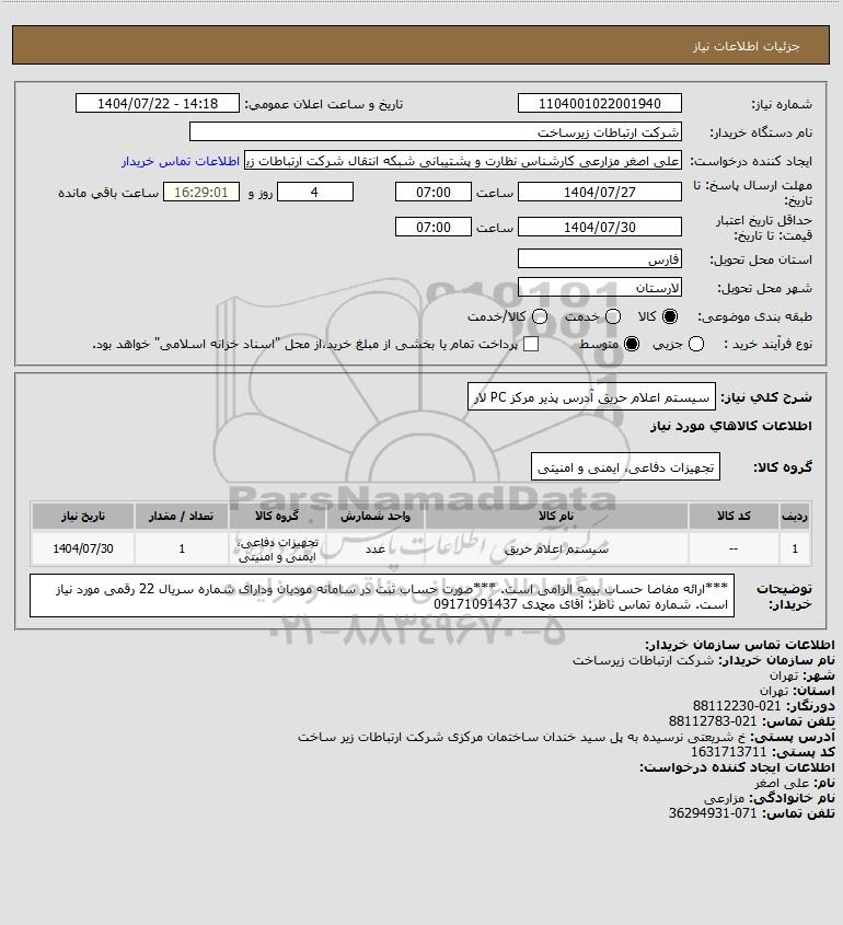 نام دستگاه خریدار:شرکت ارتباطات زیرساخت