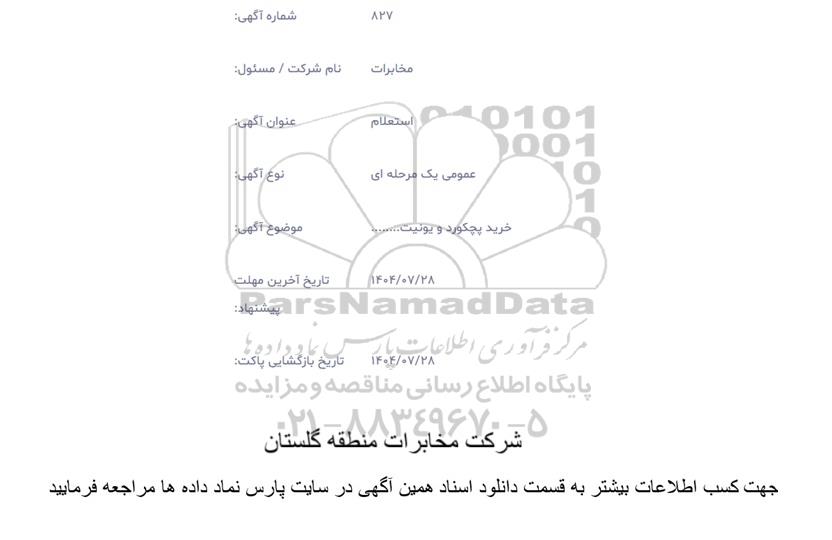 برای شرکت در مناقصه حتما از تصویر آگهی در سایت پارس نماد داده ها استفاده نمایید