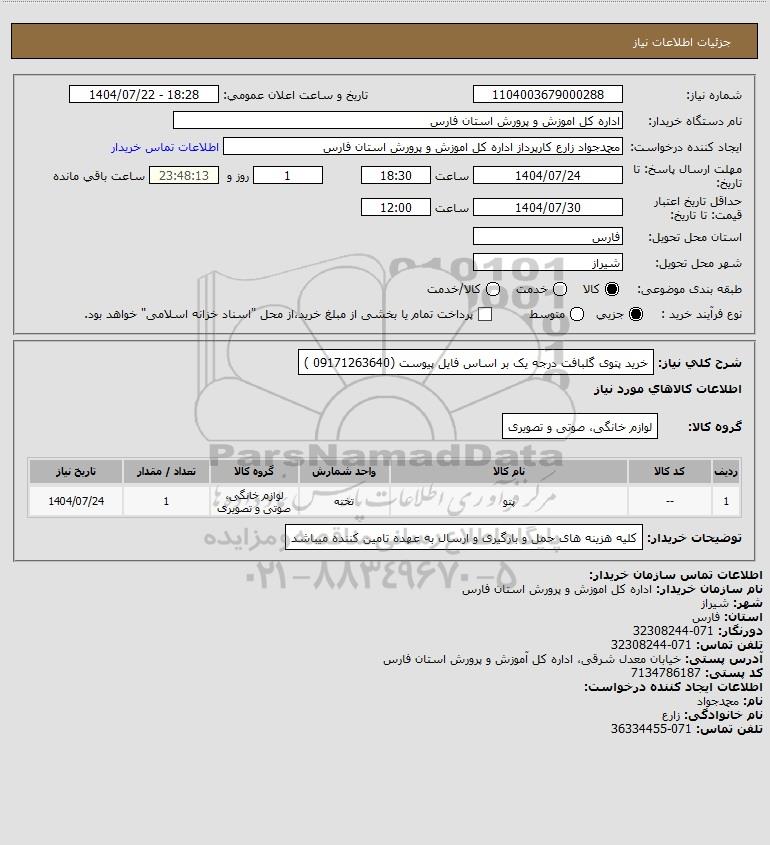 نام سازمان خریدار: اداره کل اموزش و پرورش استان فارس