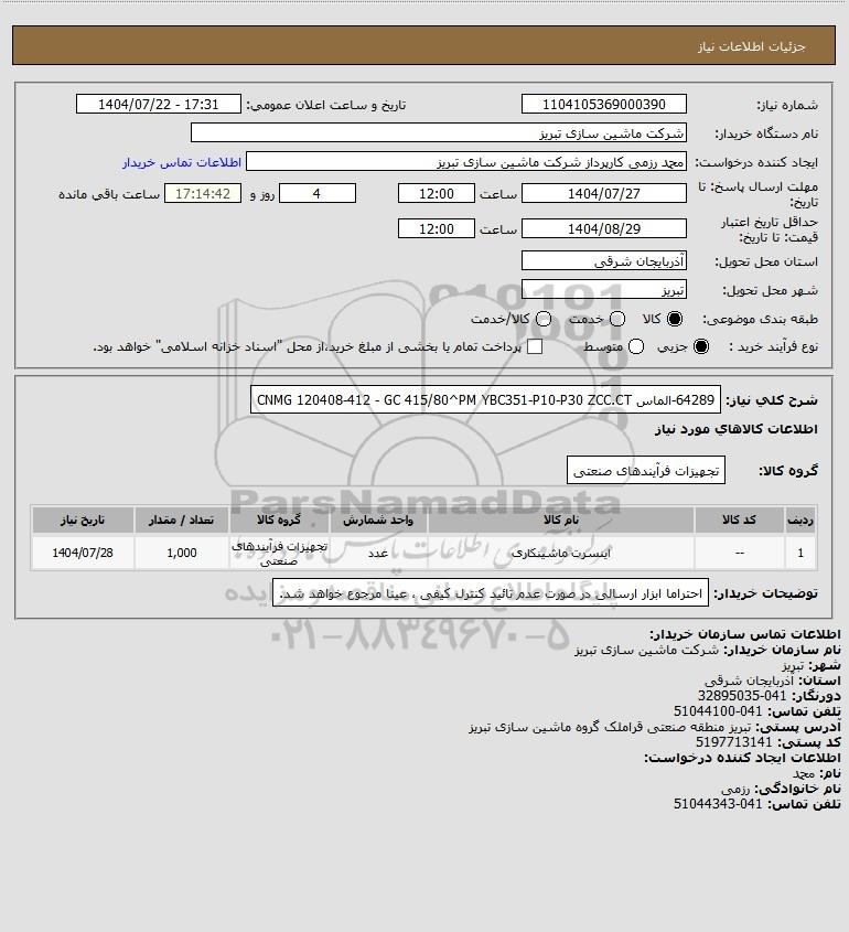 نام دستگاه خریدار:شرکت ماشین سازی تبریز