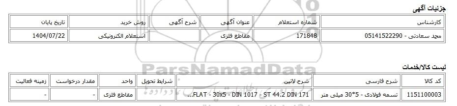 محمد سعادتی - 05141522290 | 171848 | مقاطع فلزی | استعلام الکترونیکی | 1404/07/22 |