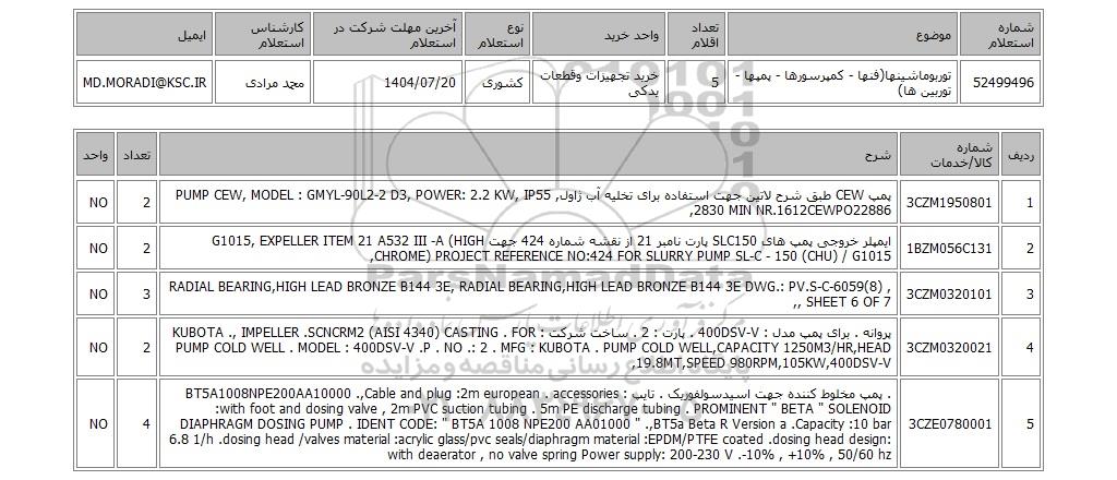52499496توربوماشینها(فنها - کمپرسورها - پمپها - توربین ها)5خرید تجهیزات وقطعات یدکیکشوری1404/07/20محمد مرادیMD.MORADI@KSC.IR