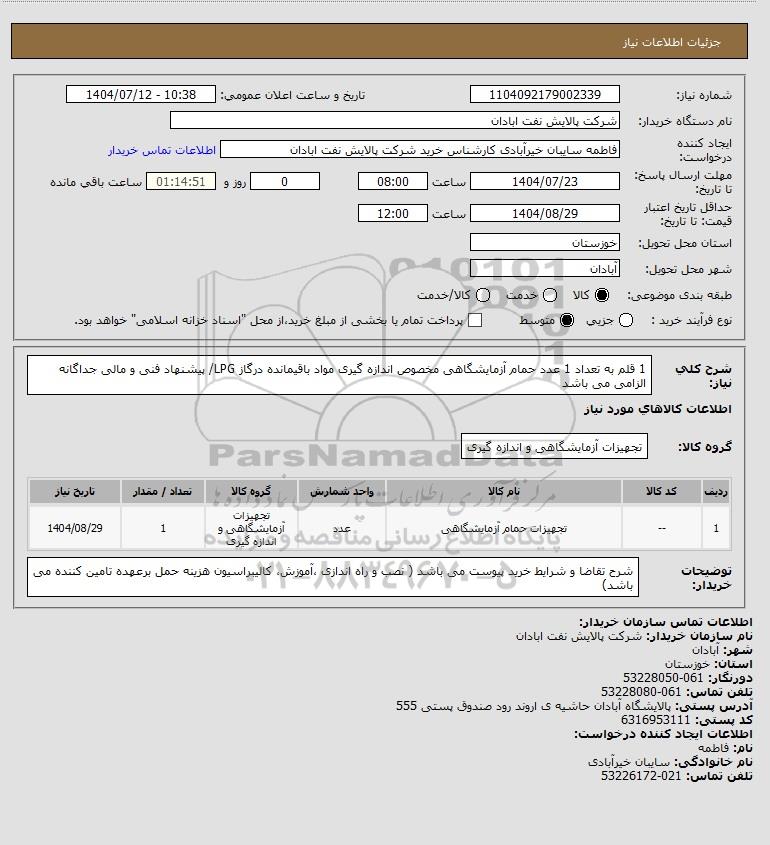 نام دستگاه خریدار:شرکت پالایش نفت ابادان