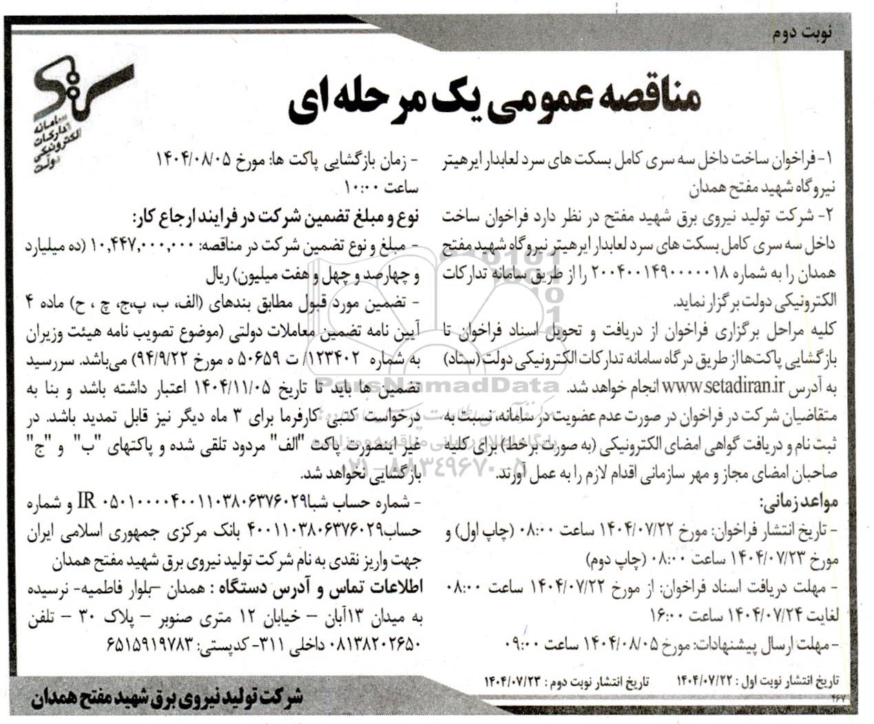 - تاریخ انتشار فراخوان: مورخ 1404.7.22 ساعت 08.00 (چاپ اول) و مورخ 1404.7.23 ساعت 08.00 (چاپ دوم)