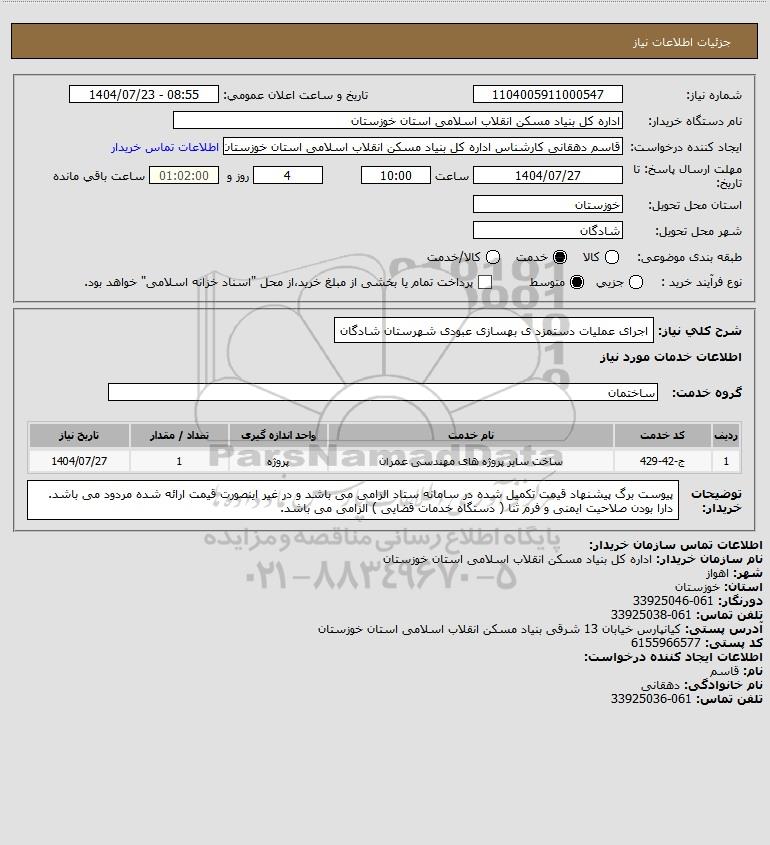 شرح کلی نیاز: اجرای عملیات دستمزد ی  بهسازی عبودی   شهرستان  شادگان