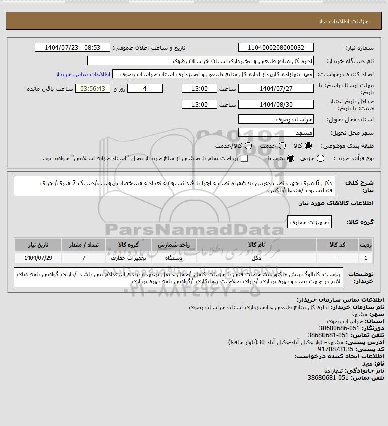 نام دستگاه خریدار:اداره کل منابع طبیعی و ابخیزداری استان خراسان رضوی