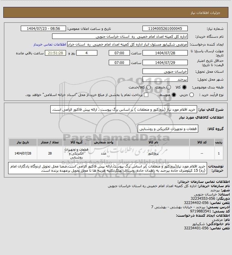 1 -- پروژکتور عدد قطعات و تجهیزات الکتریکی و روشنایی 28 1404/07/28