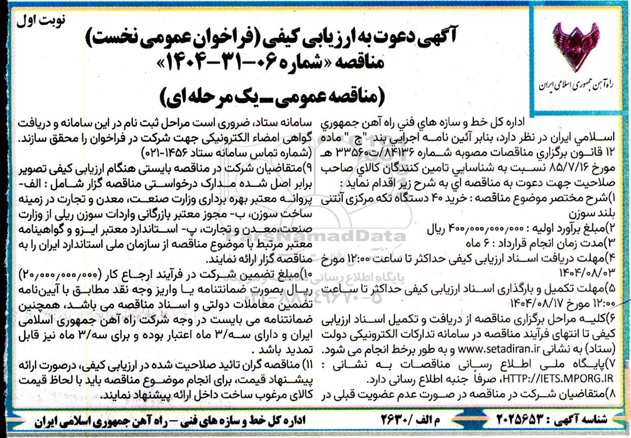 آگهی دعوت به ارزیابی کیفی (فراخوان عمومی نخست) مناقصه شماره 06-31-1404 نوبت اول