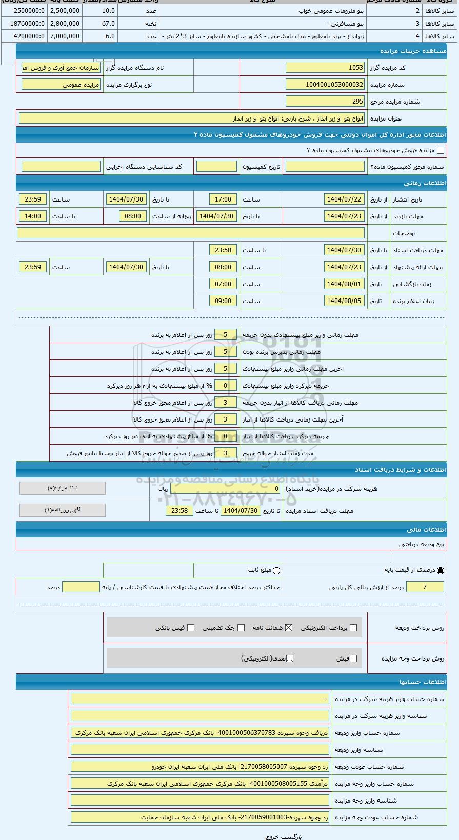 شماره پارتی1104001053012405نوع برگزاری مزایده مزایده عمومی