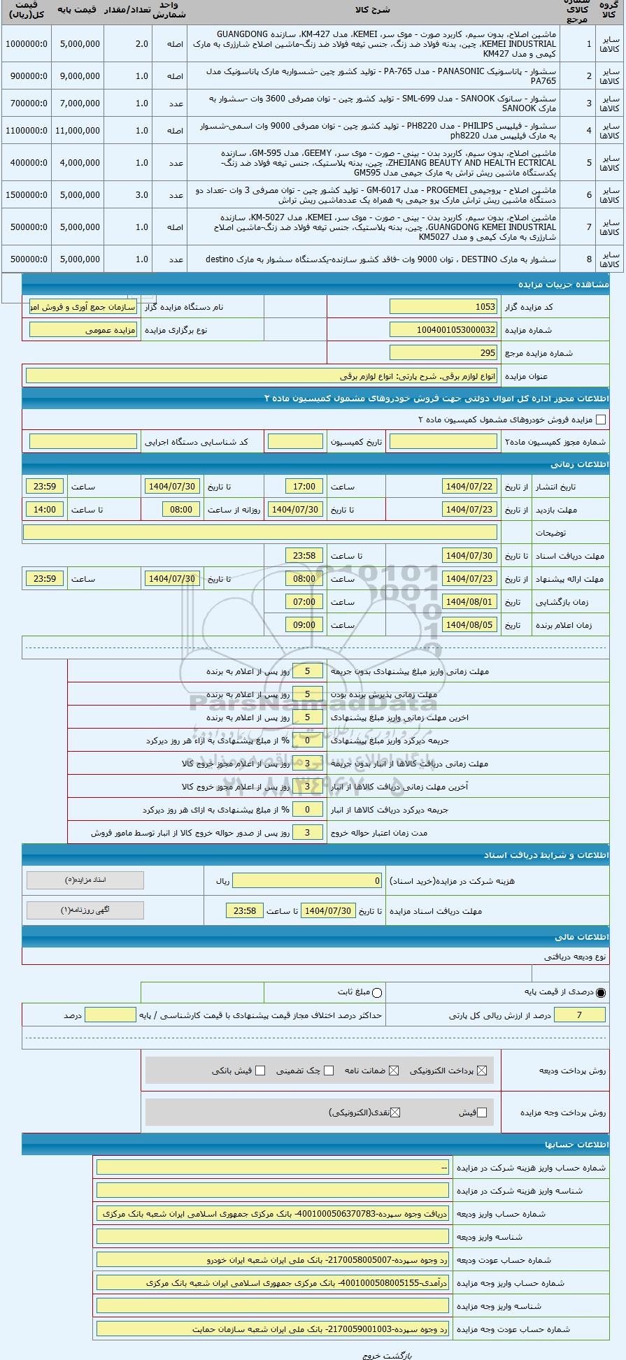 مزایده انواع لوازم برقی, مزایده ، انواع لوازم برقی