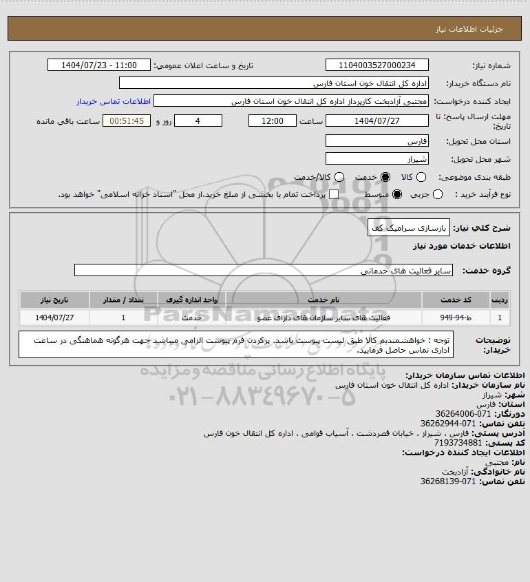 نام دستگاه خریدار:اداره کل انتقال خون استان فارس
