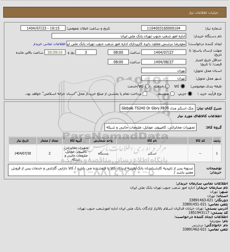 نام دستگاه خریدار:اداره امور شعب جنوب تهران بانک ملی ایران