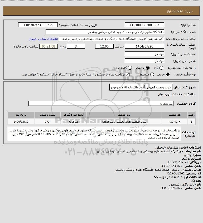 نام دستگاه خریدار:دانشگاه علوم پزشکی و خدمات بهداشتی درمانی بوشهر
