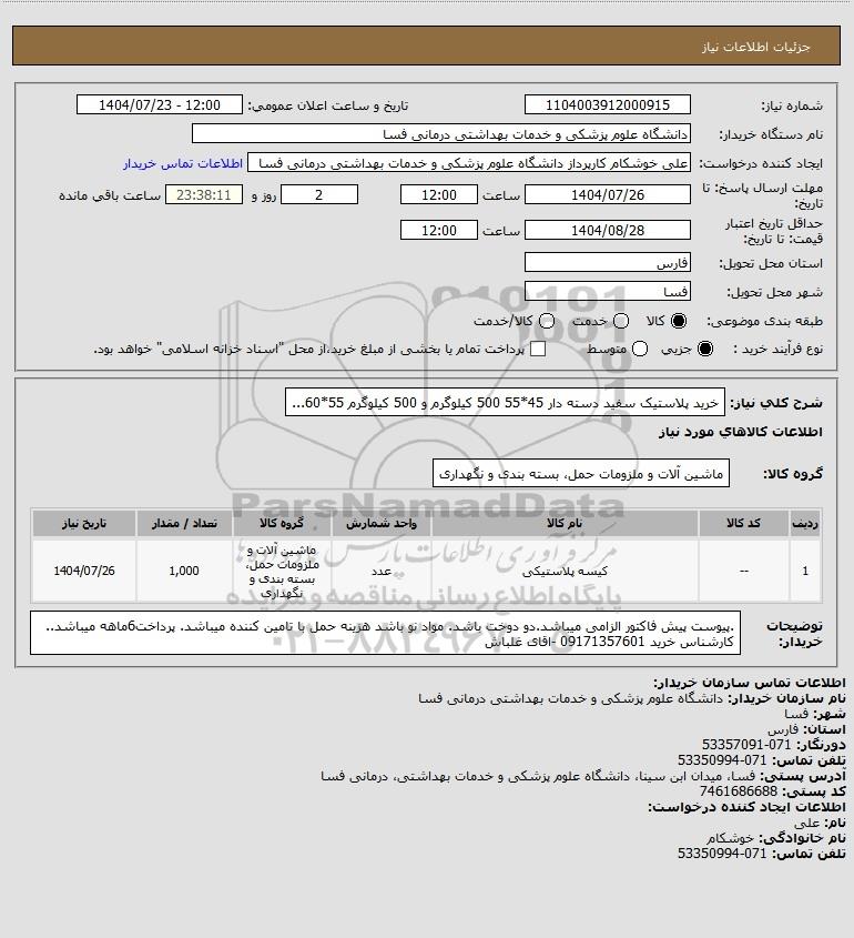 شرح کلی نیاز: خرید پلاستیک سفید دسته دار 45*55 500 کیلوگرم و 500 کیلوگرم 55*60...