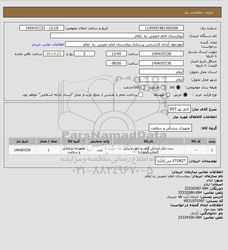 | 1 | -- | ست ابزار جراحی گوش و حلق و بینی (اتولارینگولوژی) | عدد | تجهیزات پزشکی و سلامت | 1 | 1404/07/29 |