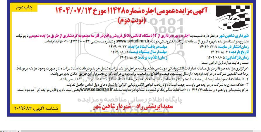 آگهی مزایده عمومی اجاره شماره 11428 مورخ 1404.07.13