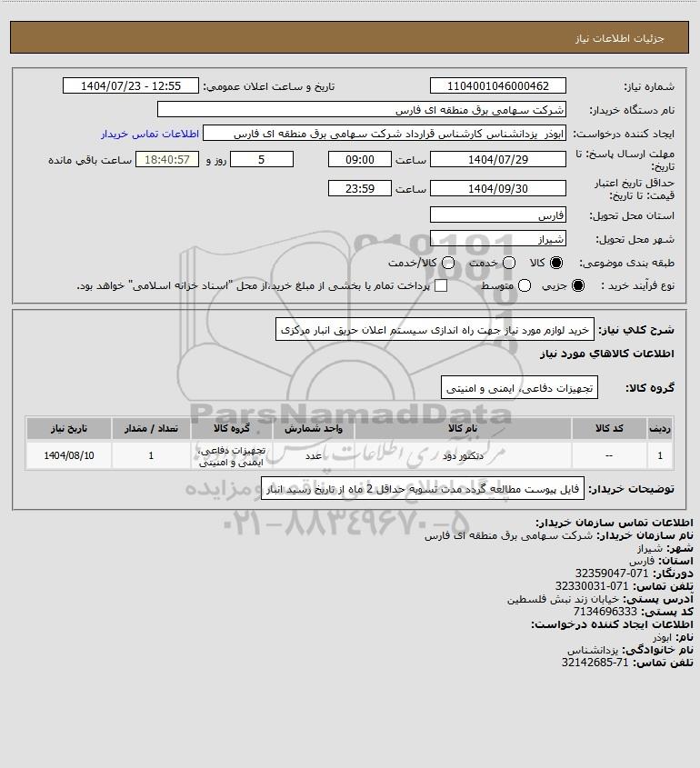 نام سازمان خریدار: شرکت سهامی برق منطقه ای فارس