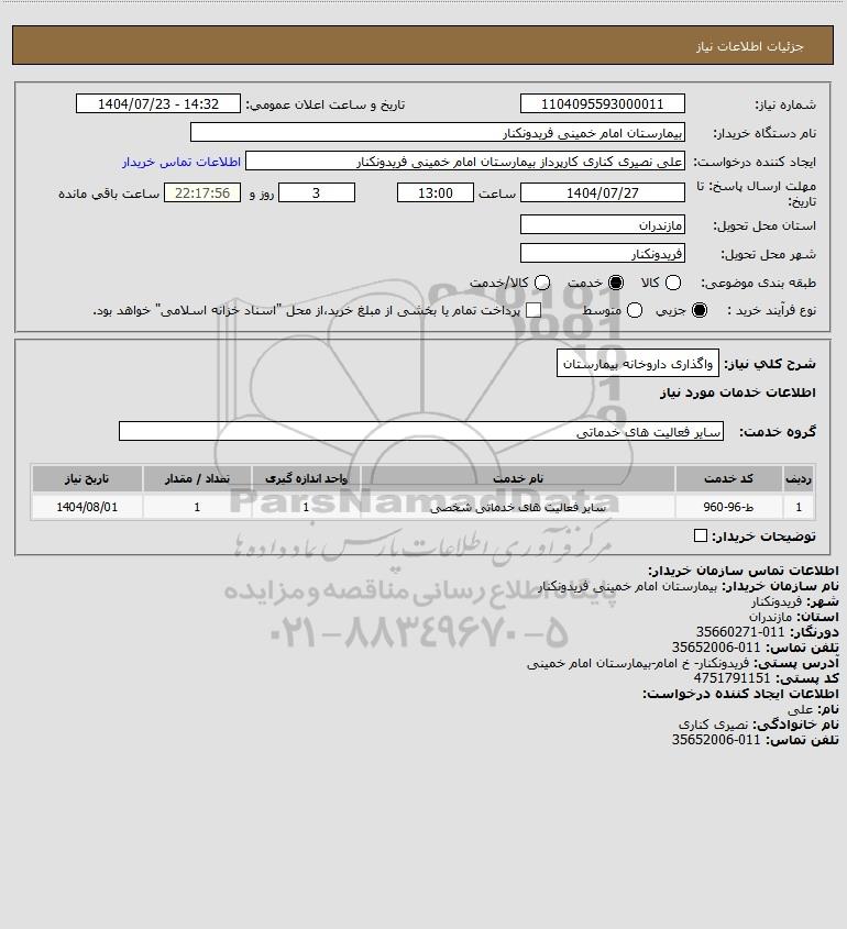 شرح کلی نیاز: واگذاری داروخانه بیمارستان