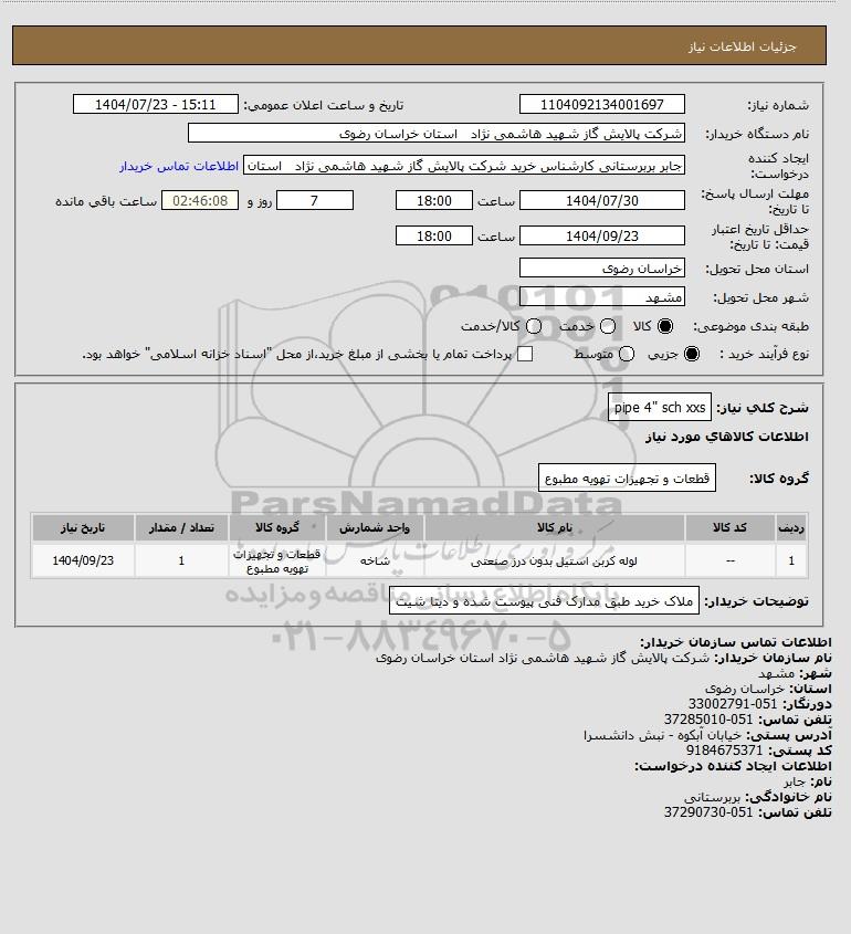 نام دستگاه خریدار:شرکت پالایش گاز شهید هاشمی نژاد استان خراسان رضوی