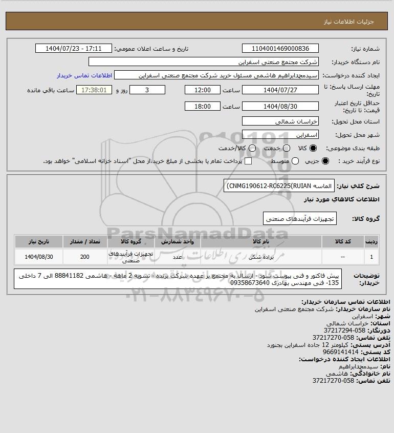 نام دستگاه خریدار:شرکت مجتمع صنعتی اسفراین