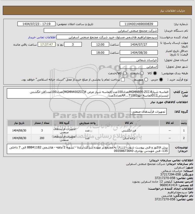 نام دستگاه خریدار:شرکت مجتمع صنعتی اسفراین
