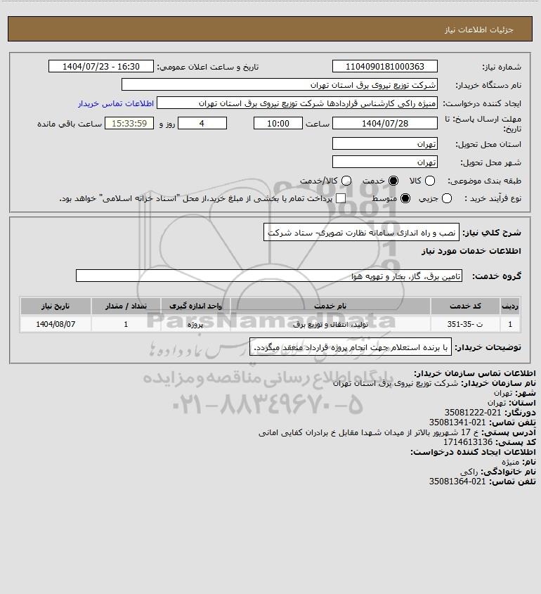 شرح کلی نیاز: نصب و راه اندازی سامانه نظارت تصویری- ستاد شرکت
